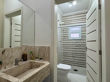 Com generosos 290m² de área total e privativa, este sobrado é um convite ao lazer e à convivência. Desfrute de 4 dormitórios, sendo 2 suítes elegantemente decoradas, perfeitas para o descanso e privacidade da sua família. Os 5 banheiros, incluindo um lavabo, garantem o conforto de todos os moradores e visitantes.