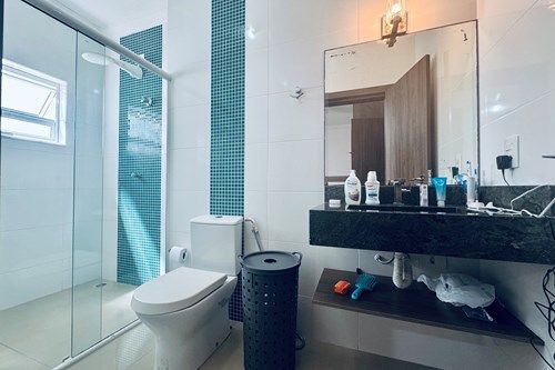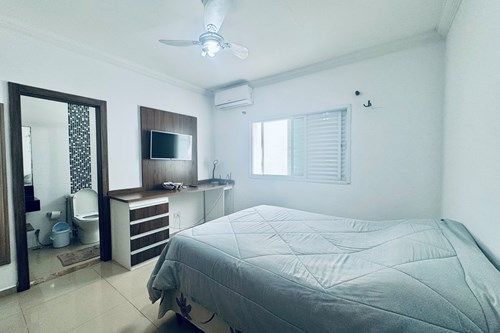 O imóvel dispõe de quatro suítes confortáveis, todas com ar-condicionado, garantindo bem-estar em todas as estações. Uma das suítes conta com closet, oferecendo ainda mais praticidade e organização.